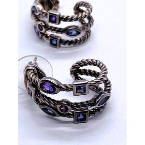 David Yurman 3 row Confetti Earrings Amethyst Sterling Silver 925