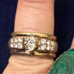 Cigar Cable Ring 14 carat gold with Sterling silver customized with several diamonds. Pristine piece of jewelry.