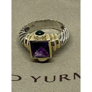 David Yurman 925 14K Gold Renaissance Cable Ring Amethyst Green Onyx Sz 7.75