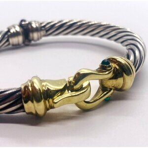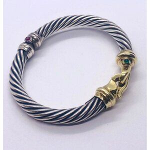 David Yurman 925 14k Cable Buckle Bracelet Chalcedony and Garnet