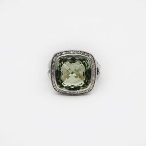 David Yurman 925 Silver Albion Diamond Prasiolite Halo Ring