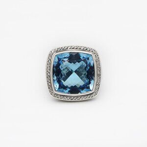 David Yurman 925 Silver Albion Diamond Topaz Halo Ring