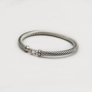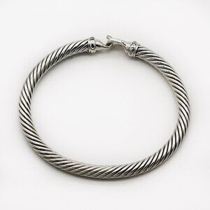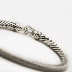 David Yurman 925 Silver and Diamonds Cable Hook Buckle Bangle Bracelet