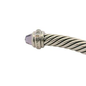 Extended Title - David Yurman 925 Sterling Classic 4mm Cable Bracelet with Amethyst and Diamonds Size M 6.5