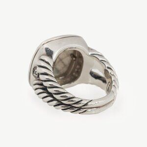 This Albion ring from David Yurman is crafted in a sterling silver, and features a unique cushion-cut 18k yellow gold stone in the center, diamonds on the border, and rope-motif detailing on the band.