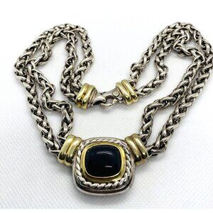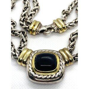 David Yurman Albion Double Chain Wheat Onyx Necklace Sterling Silver 925 14K 585 Gold