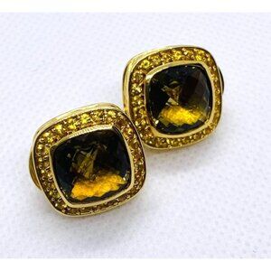 David Yurman Albion Earrings 18KT Yellow Gold 750 Citrine Omega Backs.