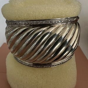 David Yurman Authentic Sculpted Cable Cuff Silver with Diamonds