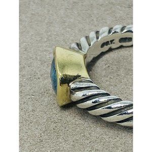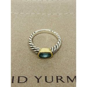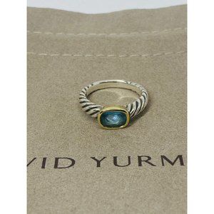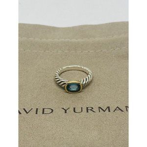 David Yurman BLUE TOPAZ Noblesse Ring, 925 Sterling Silver, 18K 750 Gold, 6.75