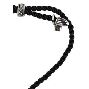 Elevate your wrist stack with this authentic David Yurman black silk cord bracelet, featuring sterling silver cable-style end caps, an adjustable sliding bead, and a signature DY charm tag. Lightweight, modern, and perfect for everyday wear.