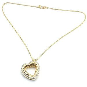 David Yurman Cable 18k Yellow Gold Diamond Large Heart Pendant Chain Necklace