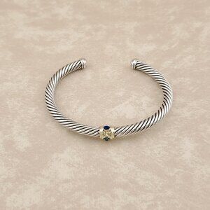 David Yurman Cable Bracelet in Sterling Silver & 14K Gold w Blue Topaz & Lazuli