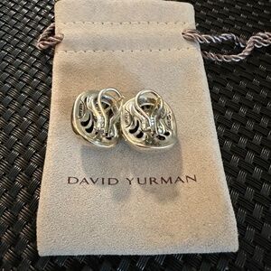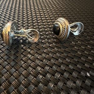 David Yurman Cable Omega Black Onyx Earrings In Sterling Silver & Yellow Gold
