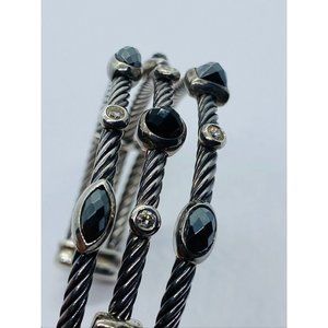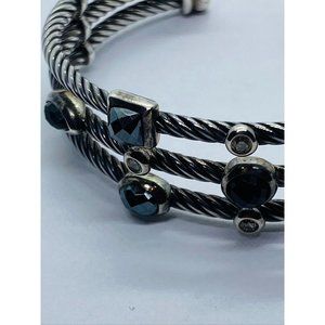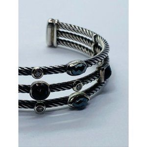 David Yurman Cable Sterling Silver Black Onyx Hematite & Diamond Confetti Cuff