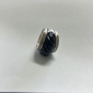 David Yurman Carved Onyx Ring Diamond Domed Sculpted Wide Band Sterling Silver