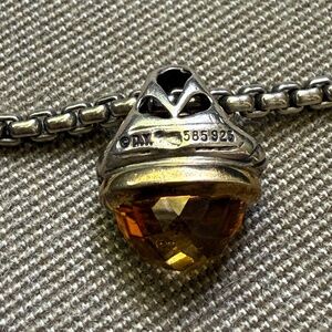 David Yurman Sterling Silver box chain and 14K Gold and Sterling Silver Citrine Acorn Pendant Necklace (585 925)