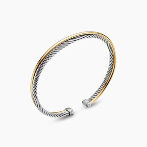 David Yurman Crossover Bracelet Womens .925 Sterling Silver 18K Gold Twisted DY