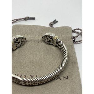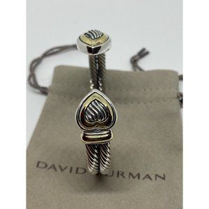 David Yurman DY 18K & 14K Sterling Silver Heart Cable Heavy Cuff Bracelet