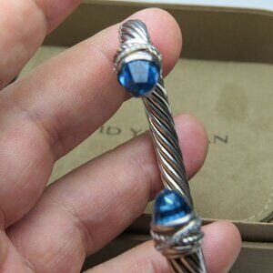 David Yurman Diamond & Blue Topaz 7mmm Cable Bangle
