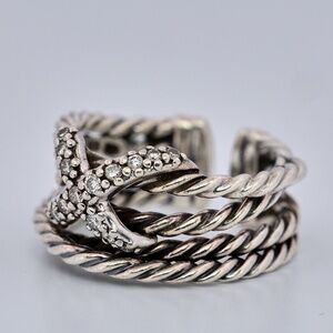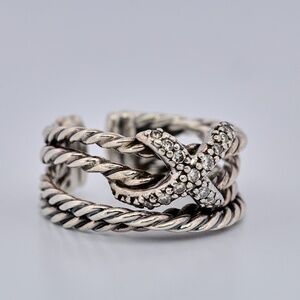 David Yurman Diamond Crossover Cable Ring Sterling Silver