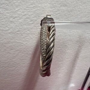 David Yurman Diamond $& Silver Twisted Hoop Earrings