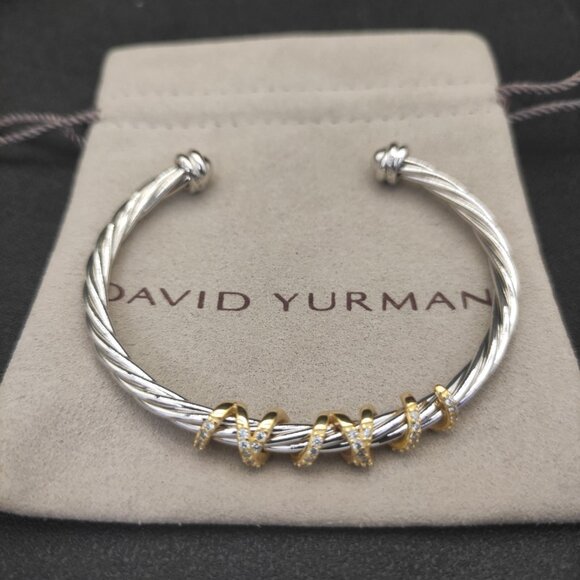"David Yurman Diamond Sterling Silver Gold Plated Wrap Round Bracelet 4mm DYSZ-009