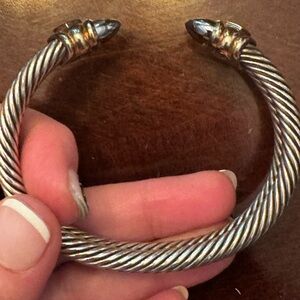 This is a VERY nice and luxurious David Yurman cuff bracelet! Double stand, double stacked cables together with gold caps and dreamy hematite and rubies at both ends! Stones are in phenomenal shape and the piece looks amazing!! So beautiful and rare ❤️