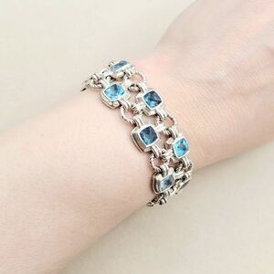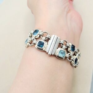 David Yurman Double Row Blue Topaz Renaissance Link Bracelet