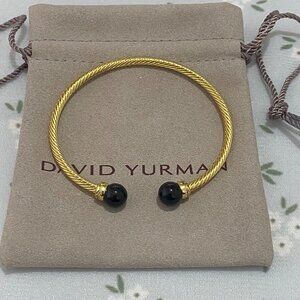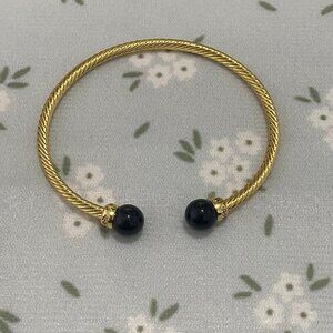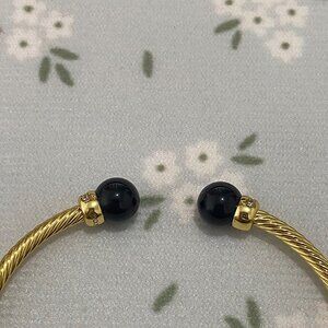 David Yurman Gold Rope Bracelet With Black Beads At Each End
