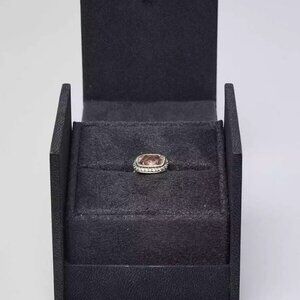 Royal styling from David Yurman's Noblesse collection. This gorgeous collection features brightly colored gemstones in cushion-cut designs. This particular ring features a stunning faceted (10 x 8mm) mogranite stone with sparkling pave diamonds on either side equaling .18 cttw. You will love this beautiful creation from David Yurman. Retail price is $750.