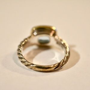 David Yurman Noblese Ring in turquoise and gold. I got this ring as a gift at least 6 years ago, not entirely sure. It could use a little TLC since there are some scratches, but nothing a jeweler couldn't easily fix up. I'm pretty sure it is a size 6. My ring size is 5.75 and this is a little bit big for me. I don't have any of the original packaging.
