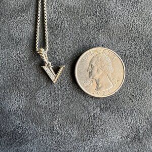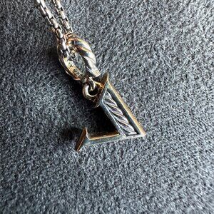 David Yurman Pavé Initial V Charm Necklace in Sterling Silver w/ White Diamonds