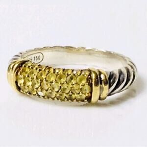 David Yurman Pavé Yellow Sapphire Sterling Silver 18K 750 Yellow Gold Ring Size 6 W/ Pouch 🎁