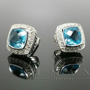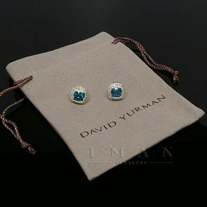 David Yurman Petite Albion 7mm Earrings BLUE TOPAZ and DIAMONDS