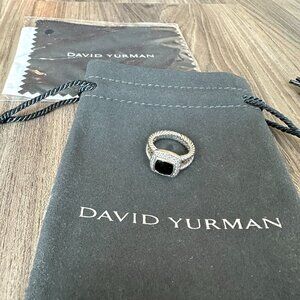 David Yurman Petite Albion Black Onyx Ring Size 6. Sterling Silver with Black Onyx and Diamonds, 7mm. Lightly worn and cleaned. In near perfect condition.
