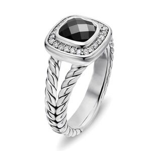 David Yurman Petite Albion Ring Sterling Silver Black Onyx Diamonds, SZ 6-7mm