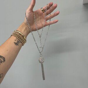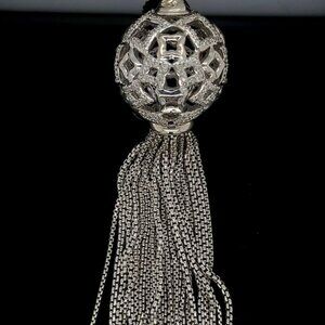 Pendant is approx: 4.5 in. length, chain is 54in.