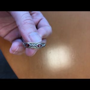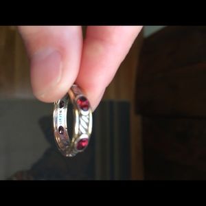 Beautiful David Yurman ring made out of silver, 14K gold, with garnet stones. This item was only worn a handful of times, so its in excellent condition. In the daylight the stones look magenta even though their garnets. Please let me know if you have questions or want to see more photos.