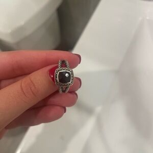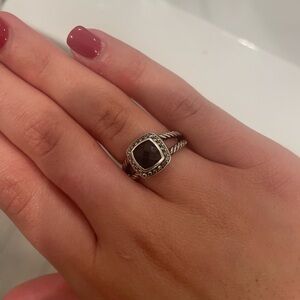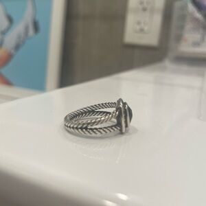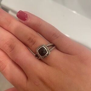 David Yurman sterling silver petite Albion ring with black onyx and diamonds
