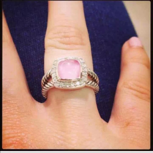 Size 5. Petite Albion ring with rose quartz and diamonds. Authentic. Sold out. In perfect condition. Comes with box. Originally $825. Recently cleaned and inspected for loose gems at David Yurman.