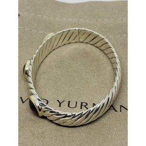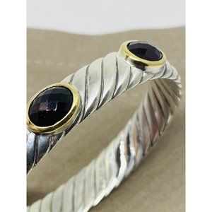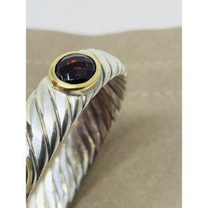 David Yurman Sterling Silver 18K Gold 12MM Oval Garnet Faceted Garnet Renaissance Bracelet