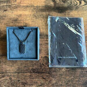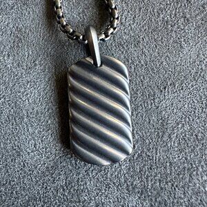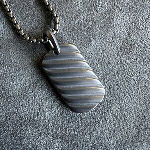 David Yurman Sculpted Cable Tag in Black Titanium & DY Stainless Steel Necklace
