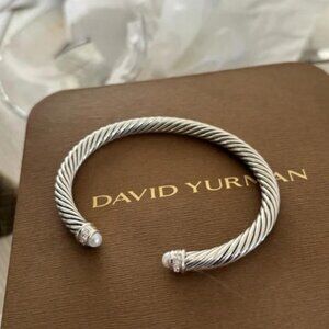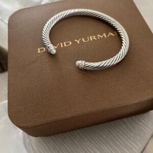 David Yurman Silver Cable Bracelet Pearl w diamonds sz s
