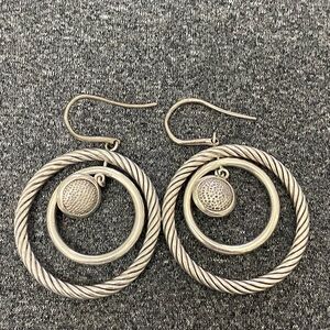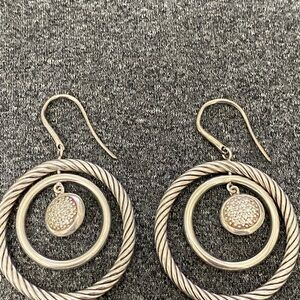 Authentic DAVID YURMAN Sterling Silver Diamond Mobile Circle Earrings. The earrings are sterling silver and feature mobile round motifs with central charms pave-set with diamonds, approximately .19 total carat weight, with 18 karat gold hooks. Comes with pouch.
