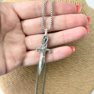 David Yurman Silver Men's Waves Dagger Pendant Amulet & Box Chain 19''-20''