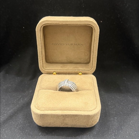 Stunning multi-band ring by David Yurman. Features intricate silver design with sparkling details. Comes with bag and box
