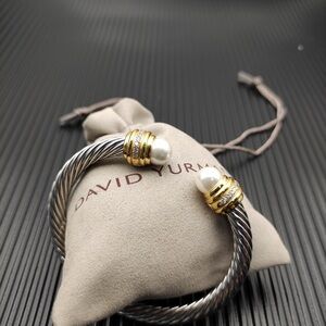 Sophisticated cable bracelet by David Yurman. Features silver and gold tones with elegant pearl accents. Ideal for a luxurious touch.