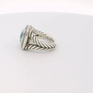 David Yurman Sterling Albion Blue Topaz Diamond Ring - Size 5.5