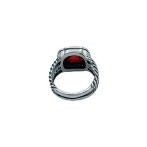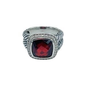 David Yurman Sterling Silver 11mm Albion Garnet & Diamonds Ring Size 9