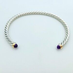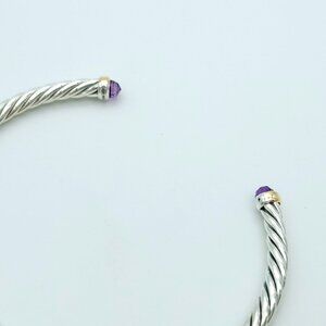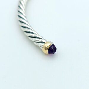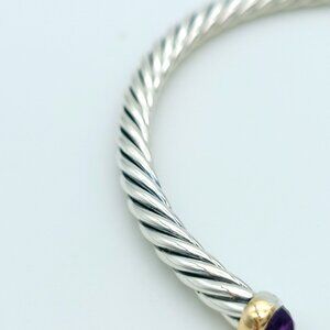 David Yurman Sterling Silver & 14k Gold 4mm Flex Amethyst Cable Bracelet 7inch